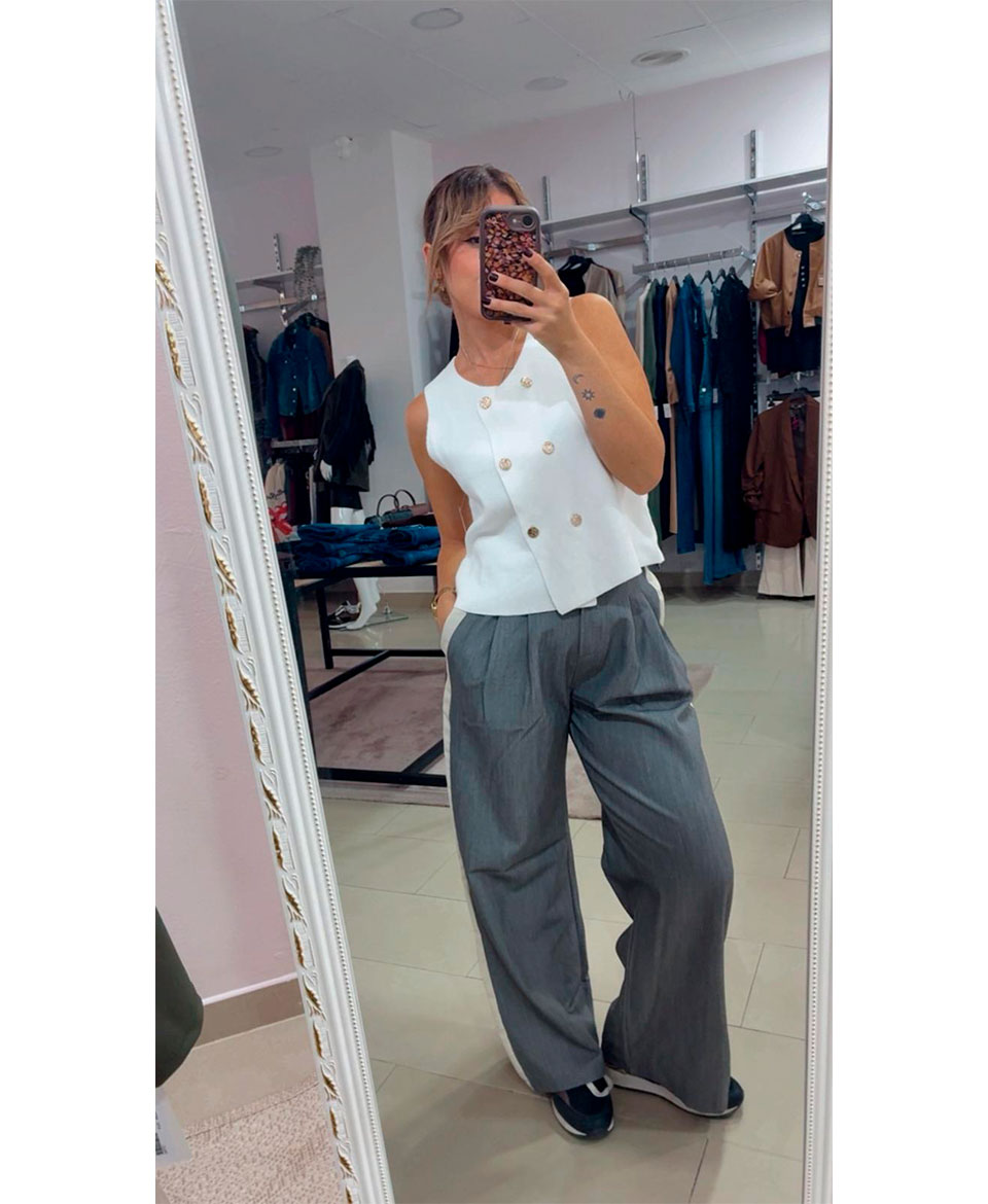 Un pantalón que puedes combinar de muchísimas manera. Un pantalón formal pero a la vez ese toque informal.